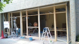 そして、この枠とドアを お店のイメージカラーである赤色に塗装するので、 かなりインパクトのある外観になりそうですねぇ〜!
